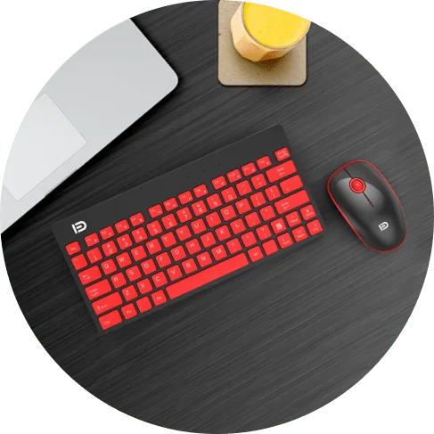 The keyboard and the mouse work together with one receiver. Don’t ever deal with long wires or having to adjust the Bluetooth connection. Versatile and effortless – plug in and work!